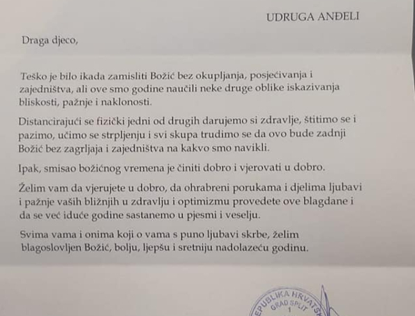 Prigodom blagdana sv. Nikole, u malo drukčijim uvjetima, bez zagrljaja i kontakata, ali s puno ljubavi i žara, posjetili su nas predstavnici Grada Splita- naše drage tete Magda Vrvilo i Nađa Mladinić i donijeli nam poklone…Hvala i našem gradonačelniku Andro Krstulović Opara na prigodnom pismu 🤗